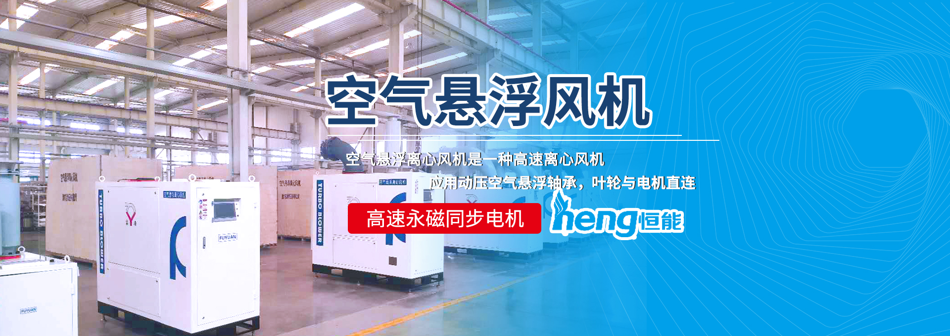 山東恒能環保能源設備有限公司代理的富源牌空氣懸浮離心風機是一種高速離心風機,應用動壓空氣懸浮軸承,葉輪與電機直連,高速永磁同